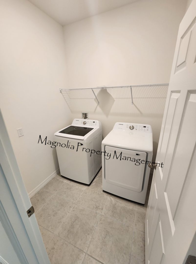 Welcome Home. New 4 bedroom 2 bathroom filled with all the latest in upgrades. Z-wave Smart package which includes video door bell camera, Smart code dead bolt, Honeywell Z-Wave Thermostat and Z-wave switches. electric car 220V-40amp plug, 2 inch faux blinds throughout, stainless steel kitchen package with a 27 cubic side by side refrigerator, 42inch cabinets with granite counter tops, 17 inch floor tile throughout with carpet in the bedrooms, inside utility room with washer and dryer included, large master bedroom with walk-in closet and a large walk-in master shower with glass enclosure, 16 SEER HVAC heat pump, high efficiency double paned low-E exterior windows, LED ceiling lights and R-30 attic insulation. Garage has been equipped with electric door opener and the floor has been treated with epoxy floor coating. On top of all of these great features you can also enjoy the luxurious community pool, clubhouse and dog parks. Close to a variety of shopping, dining and recreation.